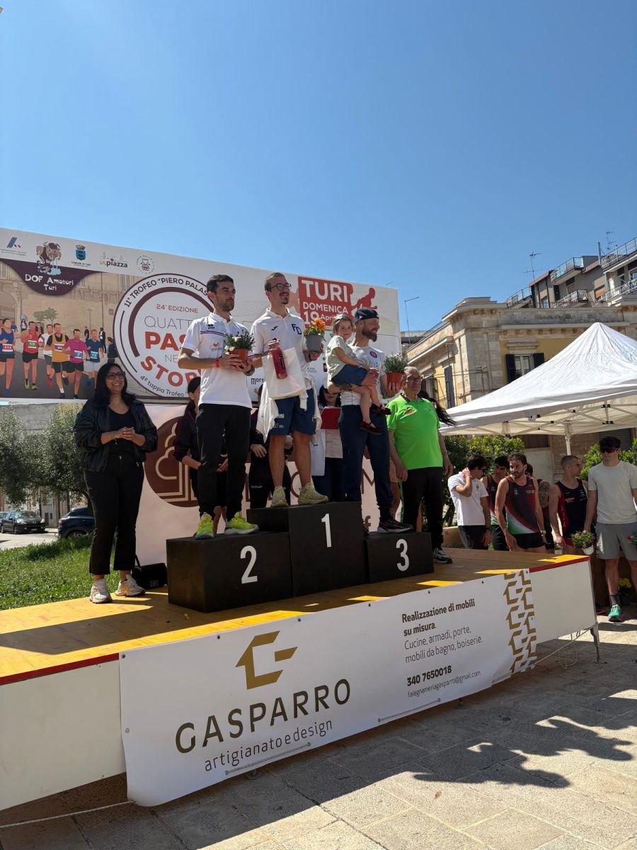 Domenica a Turi si è corsa la ventiquattresima edizione della “Quattro Passi nella Storia”, quarta tappa del Trofeo Provinciale “Terra di Bari” e decima edizione del Trofeo Piero Palasciano. Il percorso, articolato tra centro storico, tratti veloci e qualche lieve salita, ha messo alla prova gli oltre 550 finisher.