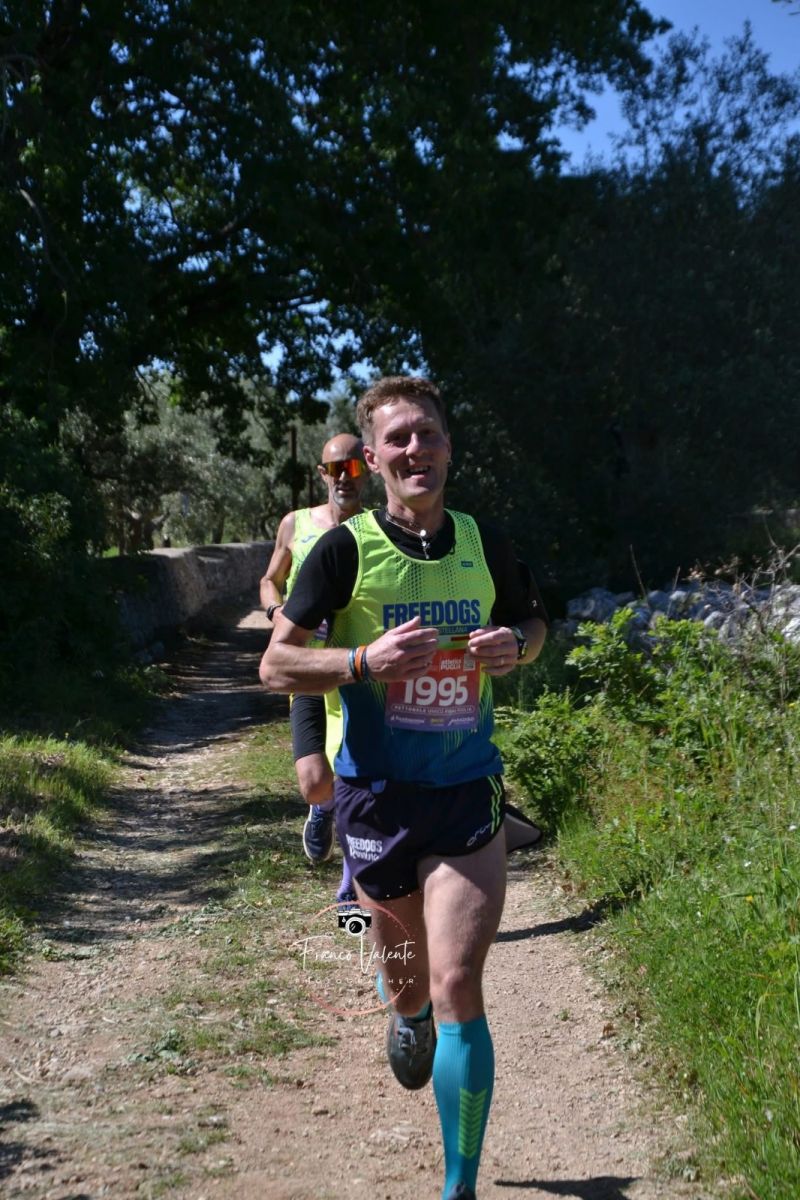 Domenica la scena si è spostata su strada con la Mezza Maratona di Gioia del Colle. Sotto un sole già estivo, oltre 1100 atleti hanno percorso i 21,097 chilometri del tracciato. Giovanni Toro è stato il primo dei Freedogs a tagliare il traguardo con un ottimo tempo di 1 ora, 25 minuti e 54 secondi, seguito da un ritrovato Domenico Ottomano. Nota di merito per Domenico Mastrangelo, che ha conquistato il quarto posto nella categoria SM65, confermando la sua forma straordinaria.
