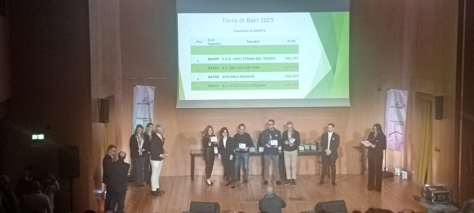 La società ha chiuso il campionato con un prestigioso quinto posto nella classifica generale, risultato che premia la partecipazione e la qualità delle prestazioni dei suoi podisti. Importante anche il riconoscimento ottenuto dal Trofeo Grotte, tappa castellanese del circuito, classificatosi quarto nella graduatoria dedicata all’organizzazione delle gare. «Un risultato che conferma la serietà e la passione con cui lavoriamo», ha commentato il presidente Vincenzo Miccolis, ricordando anche il lavoro svolto negli anni precedenti.