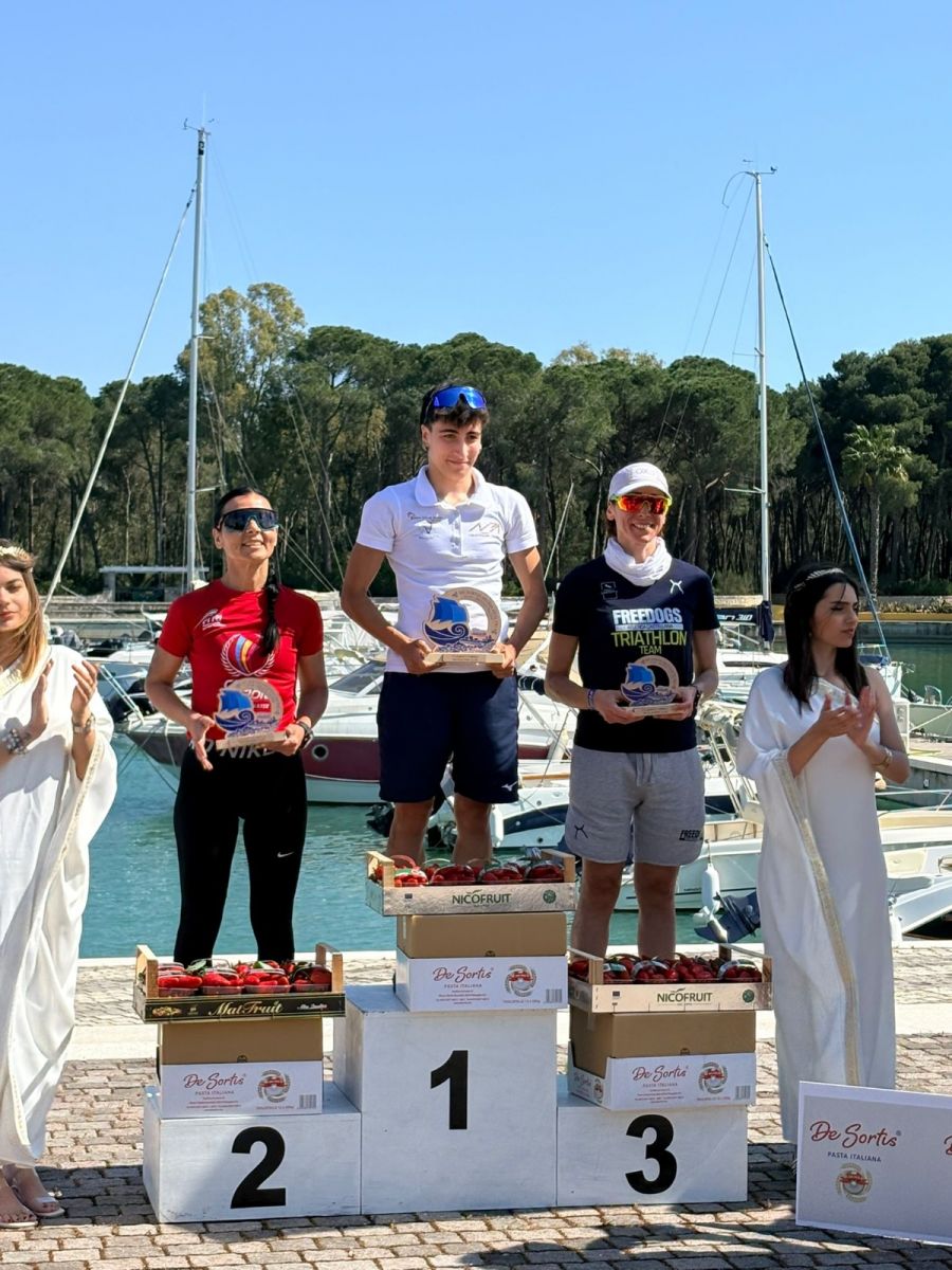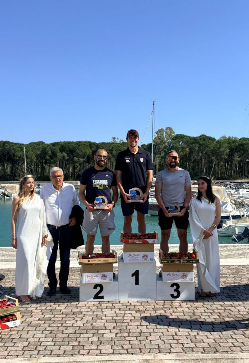 Grande giornata anche per il Freedogs Triathlon Team, impegnato nello sprint no draft in Basilicata al Porto degli Argonauti. Il percorso, composto da 750 metri di nuoto, 20 chilometri di ciclismo e 5 chilometri di corsa, ha visto i triatleti confrontarsi su un tracciato tecnico e selettivo.
